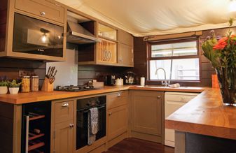 Our Safari – signature accommodation at Bowleaze Cove offers the ultimate ‘glamping’ experience. There’s room for the whole family to enjoy a unique getaway with a large open plan living area, complete with log burner style gas fire making the perfect spot for cosy evenings round the fire.