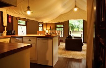 Just a touch smaller than the signature, our deluxe safari accommodation transports guests on a wild adventure! There’s room for everyone to come along, with three bedrooms: one double, one twin, one bunkbed and the option to make use of a sofa bed in the living area. We also have a dog-friendly deluxe safari option, so you can bring the whole family.