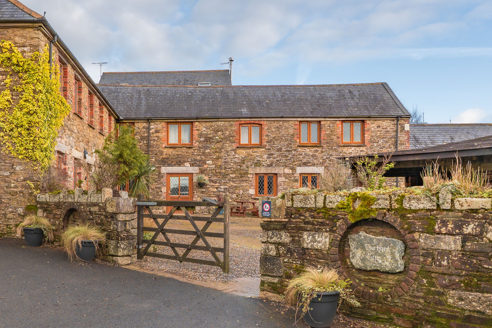 The L-shaped collection of cottages offers an communal courtyard surrounding a central BBQ. Each cottage has an individual BBQ area and dedicated seating area.