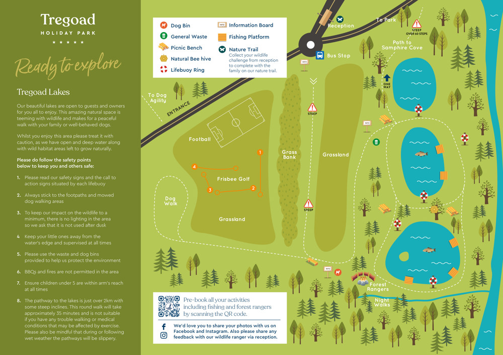 To help you make the most of your adventure, our handy map highlights the winding nature trails and tranquil lakes dotted across Tregoad. Whether you’re seeking a peaceful stroll through wildflowers, a family wildlife hunt, or simply a quiet bench to soak in the views, the map is your guide to hidden corners and must-see spots. It’s the perfect companion for curious explorers of all ages.