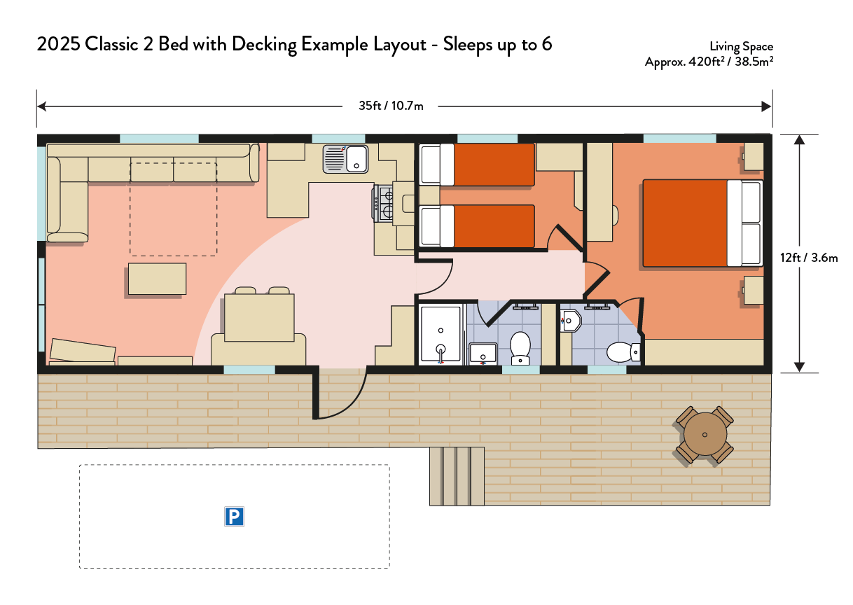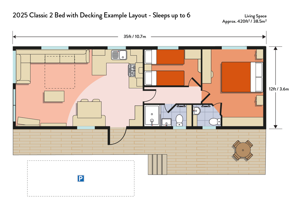 2 bedrooms, sleeps 6 - one double bedroom & one twin bedroom