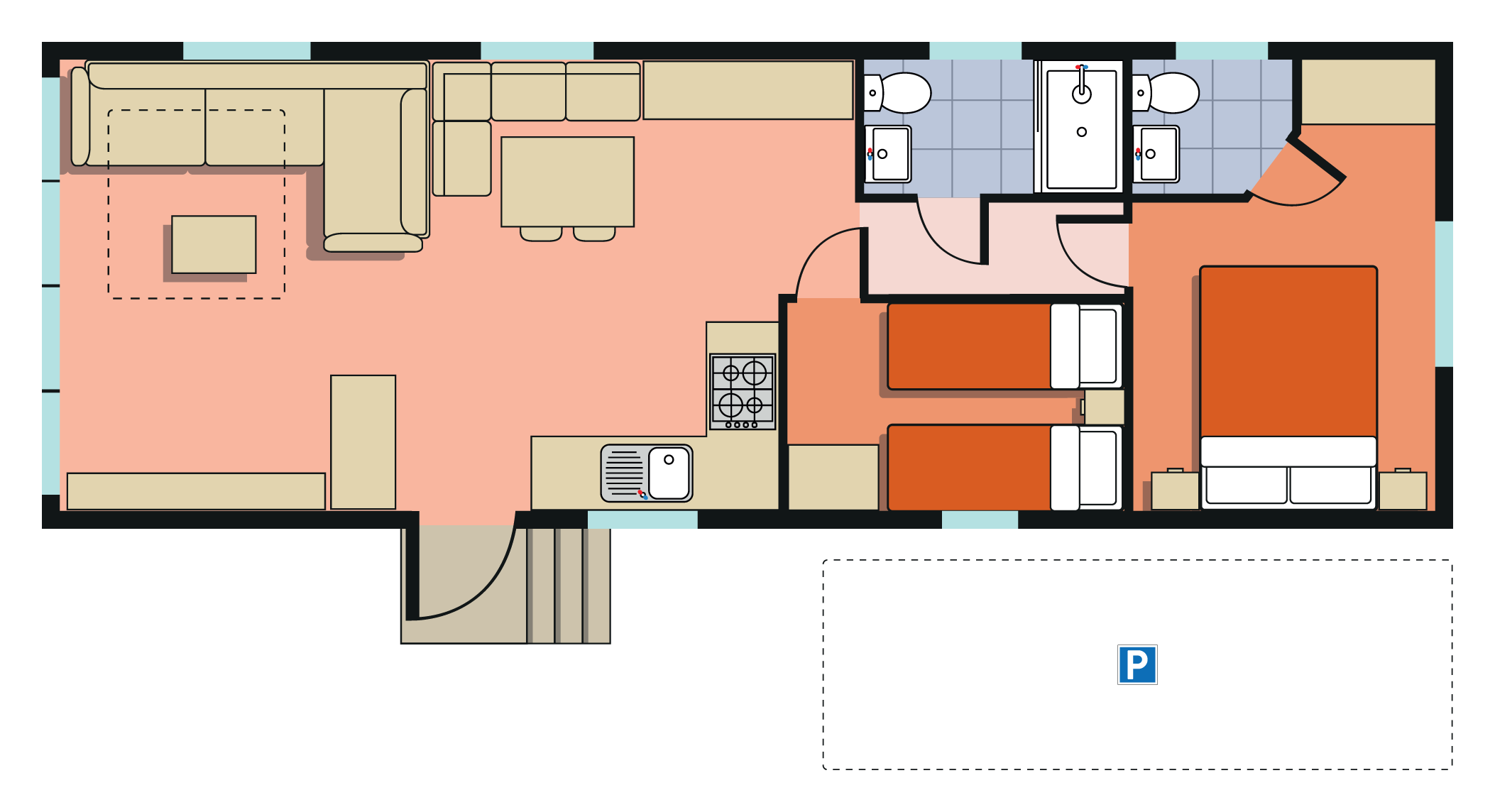 In 2 or 3 bedrooms + sofa bed