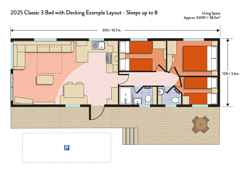 3 bedrooms, sleeps 8 - one double bedrooms & two twin bedrooms