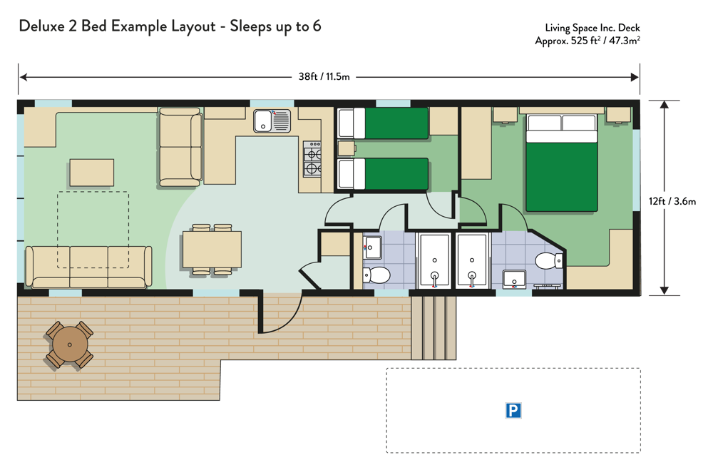 2 bedrooms, sleeps 6 - one double bedroom & one twin bedroom