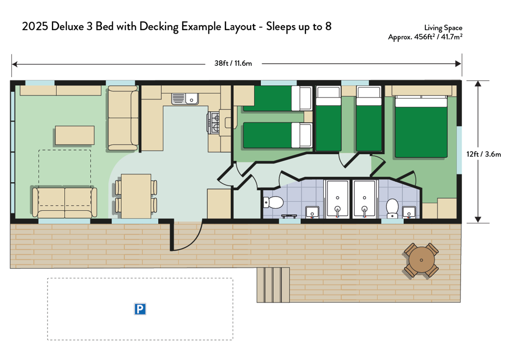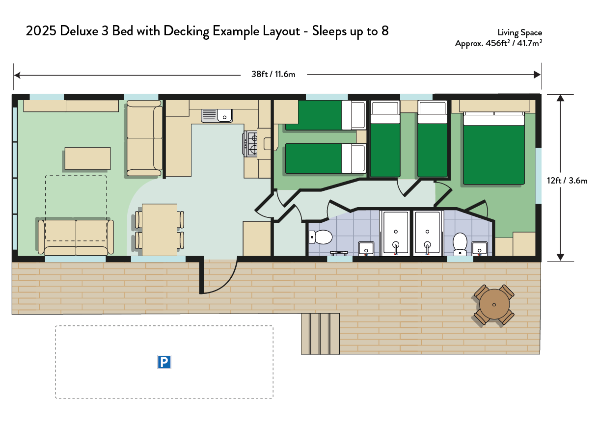 3 bedrooms, sleeps 8 - one double bedrooms & two twin bedrooms