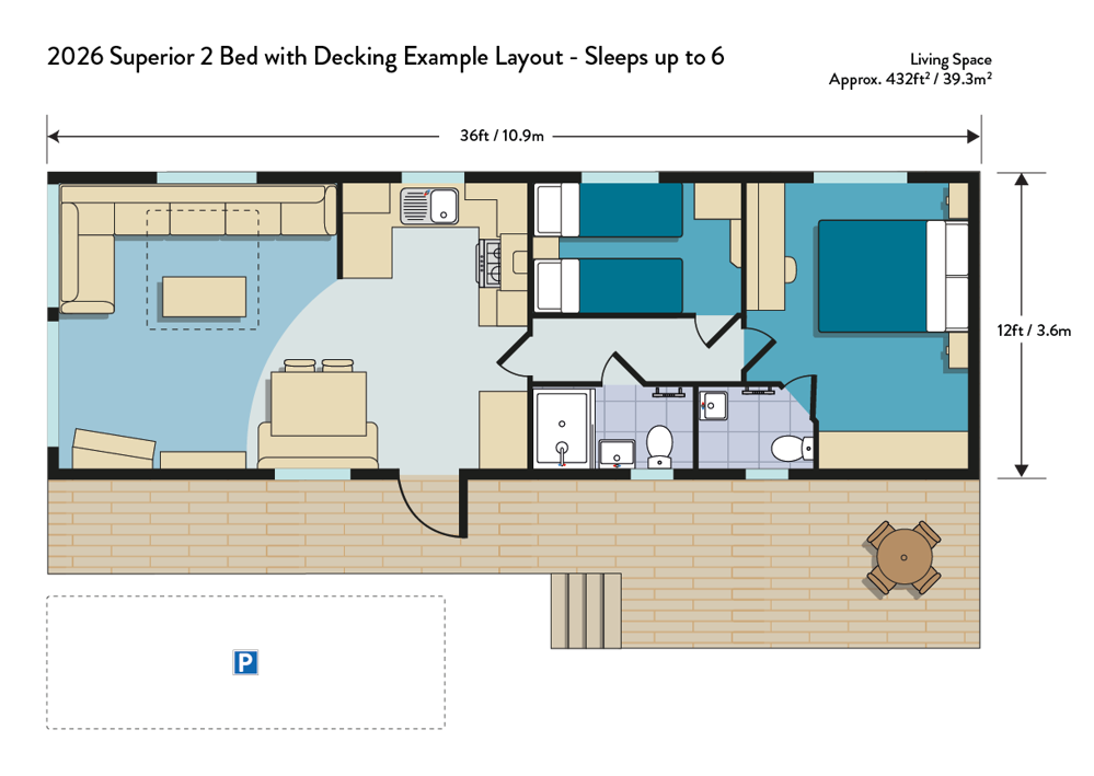 2 bedrooms, sleeps 6 - one double bedroom & one twin bedroom
