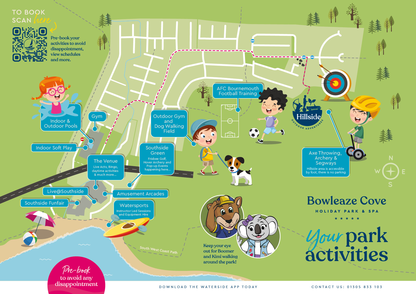 There's endless fun at Bowleaze Cove Holiday Park & Spa! See our activities map below, and check out our Facilities and Pools and Spa - all within walking distance from our Accommodation.