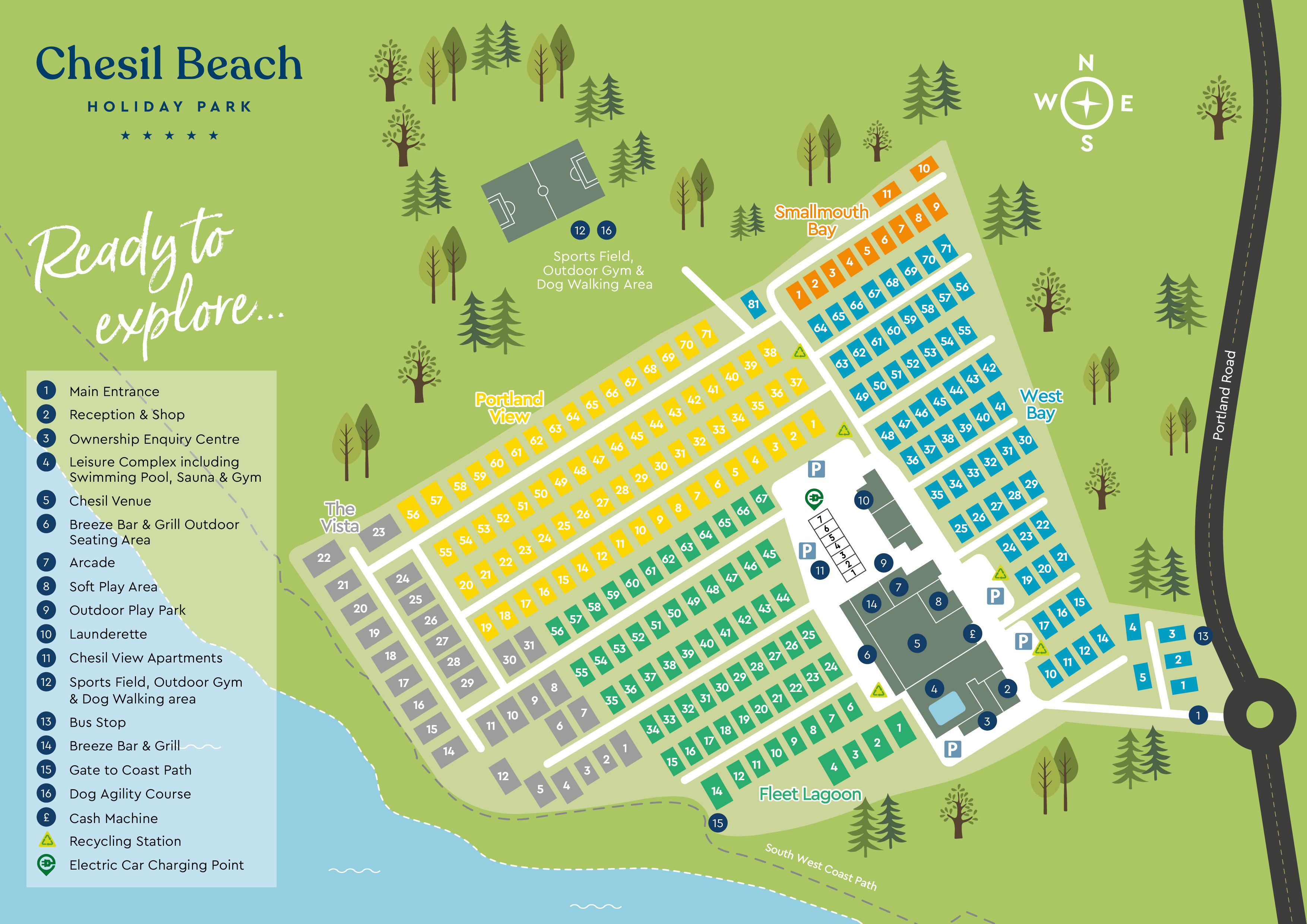 The facilities at Chesil Beach Holiday Park are within walking distance of all the accommodation. See our pitch map below or take a virtual tour.