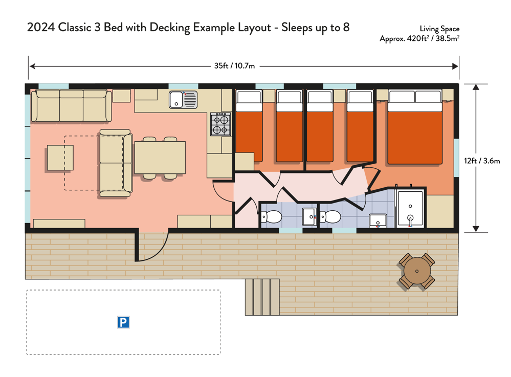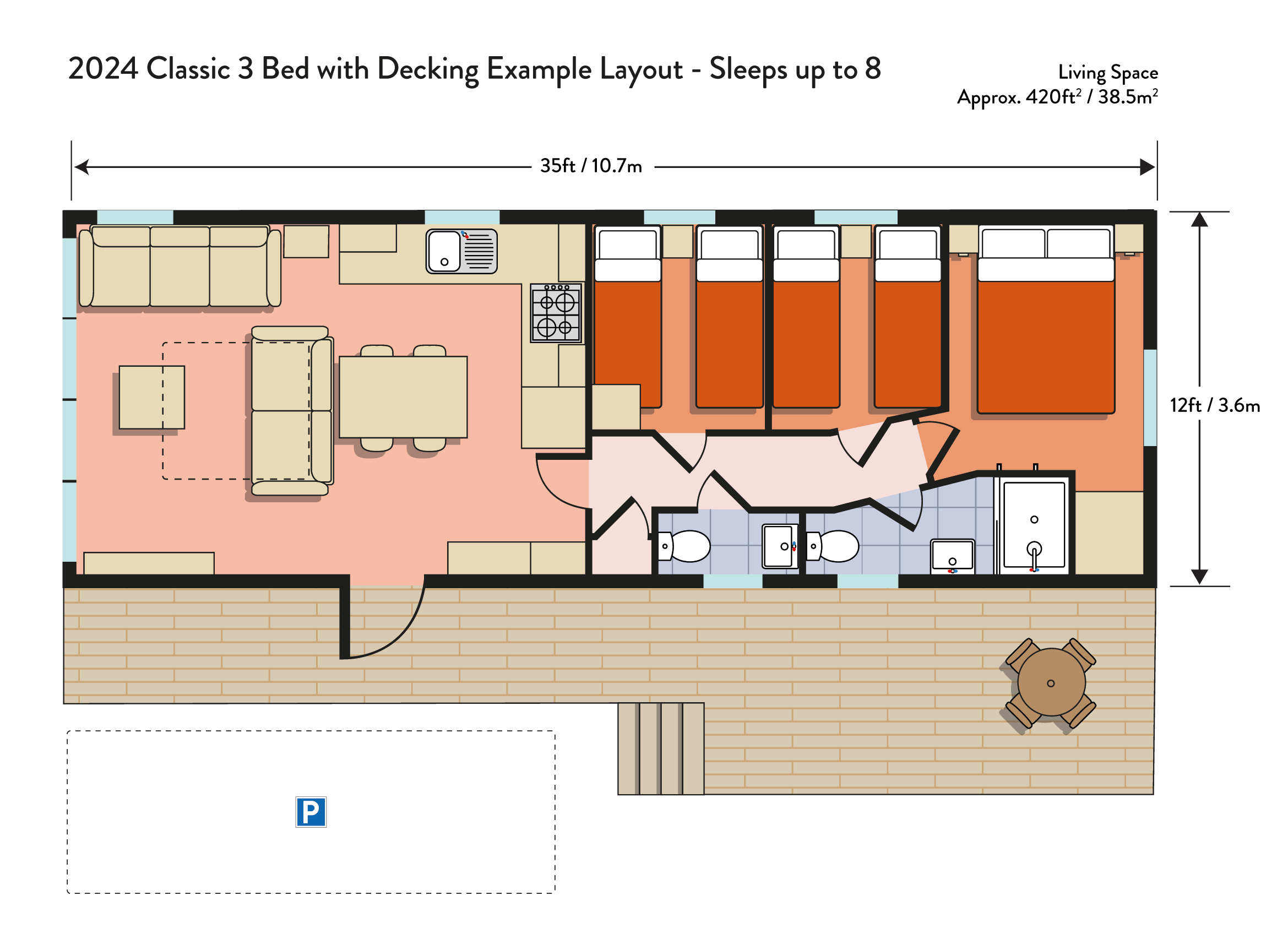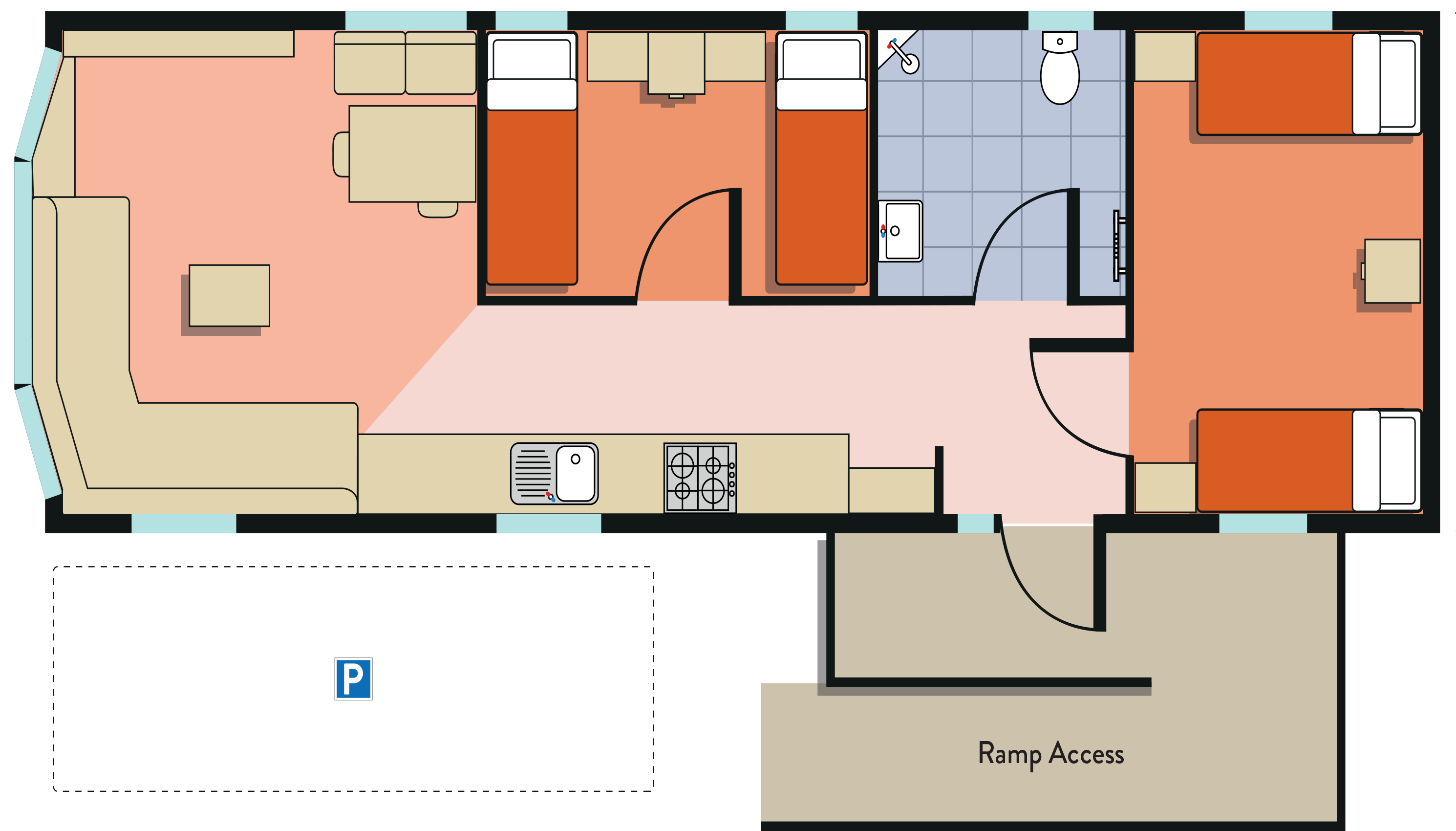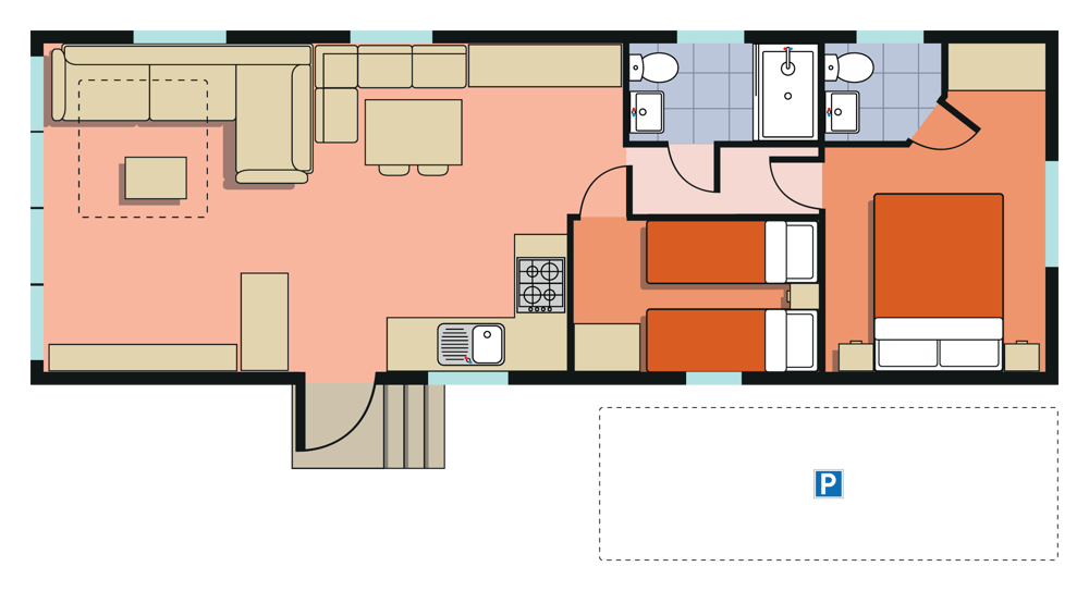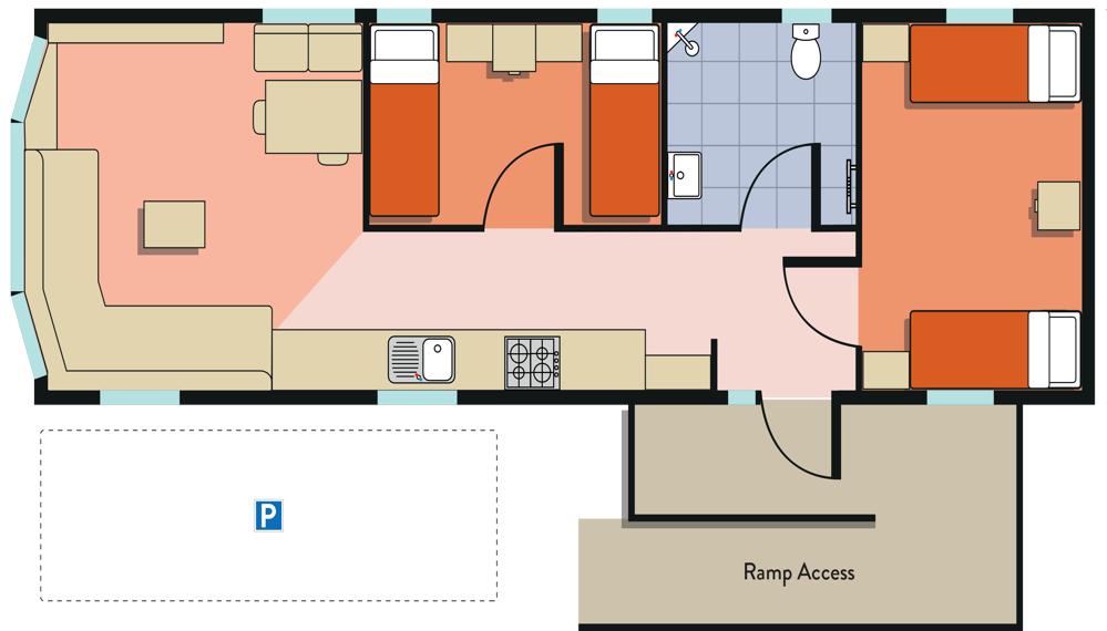 2 bedrooms, sleeps 6 - one double & one twin bedroom