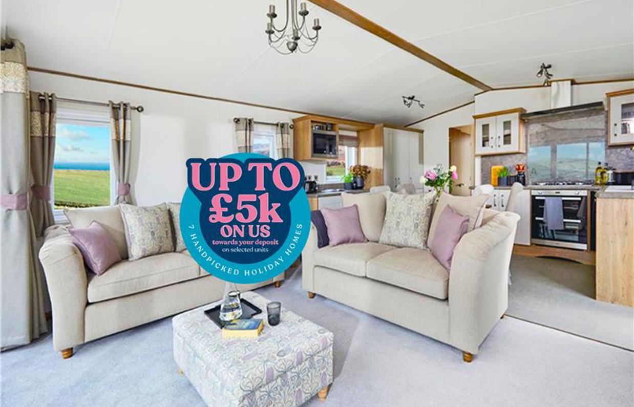 *Holiday home cash package price £78,995 less deposit of £15,000 with a loan amount of £63,995. 120 monthly payments of £827.28. Total charge for credit is £35,278.60. Total amount payable is £114,273.60 including the deposit amount. The interest rate is 9.9% APR (representative).