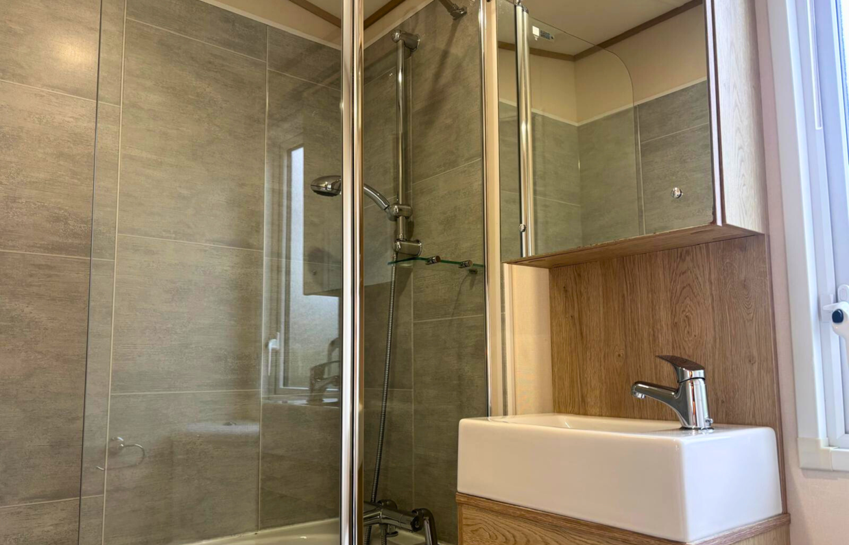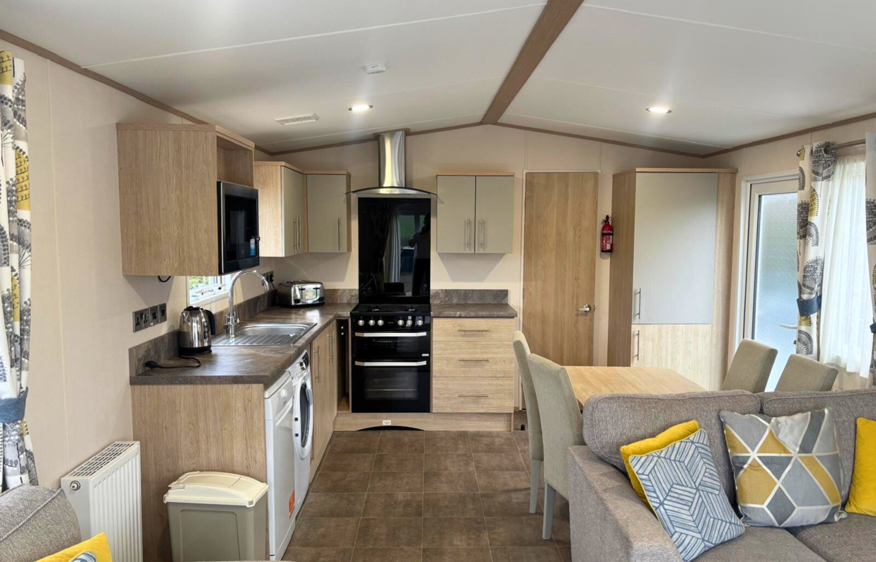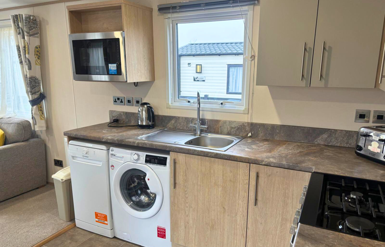This is an extremely well equipped holiday home with it's slimline dishwasher, washing machine, fridge freezer, amble cupboard space, beautiful en suite bathroom, AND huge wrap around, glass fronted deck, WITH hot tub!! Not only that, but this is a cul-de-sac, end row pitch, so you can enjoy total peace and quiet all year round.