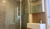 Designed for convenience and style, the kitchen includes integrated appliances, sleek cabinetry, and ample counter space for home-cooked meals or quick snacks