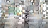 The master bedroom includes a king-size bed, dressing area, and en-suite bathroom, while the twin bedroom offers full-size single beds, wardrobe storage, and soft, restful tones throughout