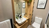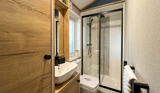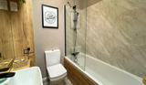There are 2 bedrooms - 1 double and 1 twin room - and an en-suite and main bathroom with bath tub.