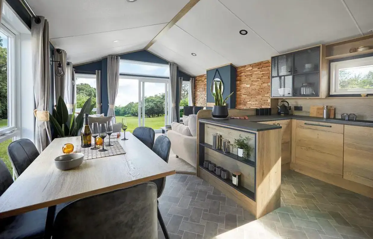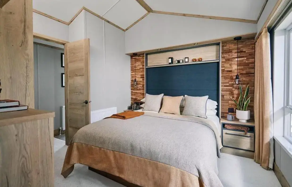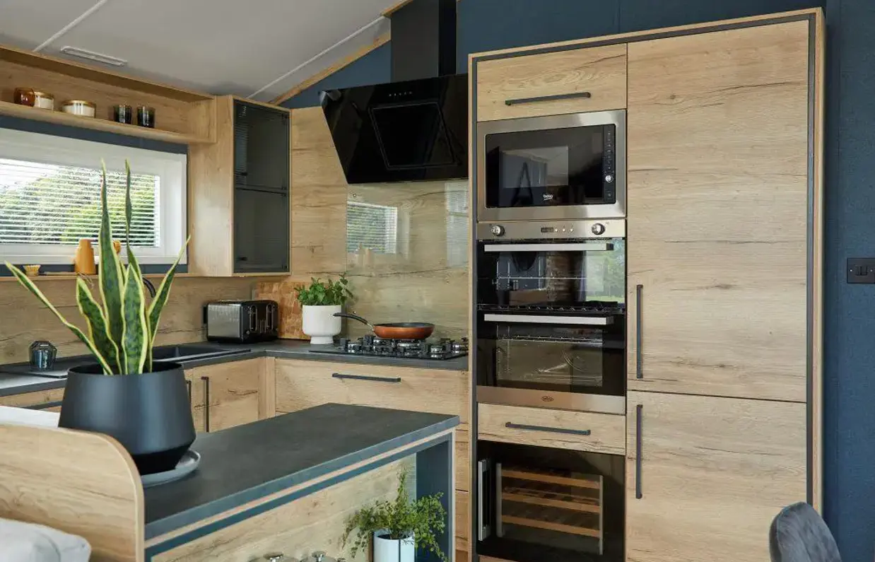 The ABI Westwood features design that oozes style and contemporary chic with it's natural wood, faux brick feature walls and dark blue colour scheme.