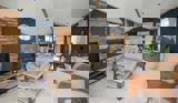 It doesn’t skip a beat on the features front either. Front sliding doors, integrated dishwasher and wine cooler, soft-close hinges throughout, king-size bed with lift-up feature for extra storage, USB sockets, and large windows bringing in plenty of natural light.
