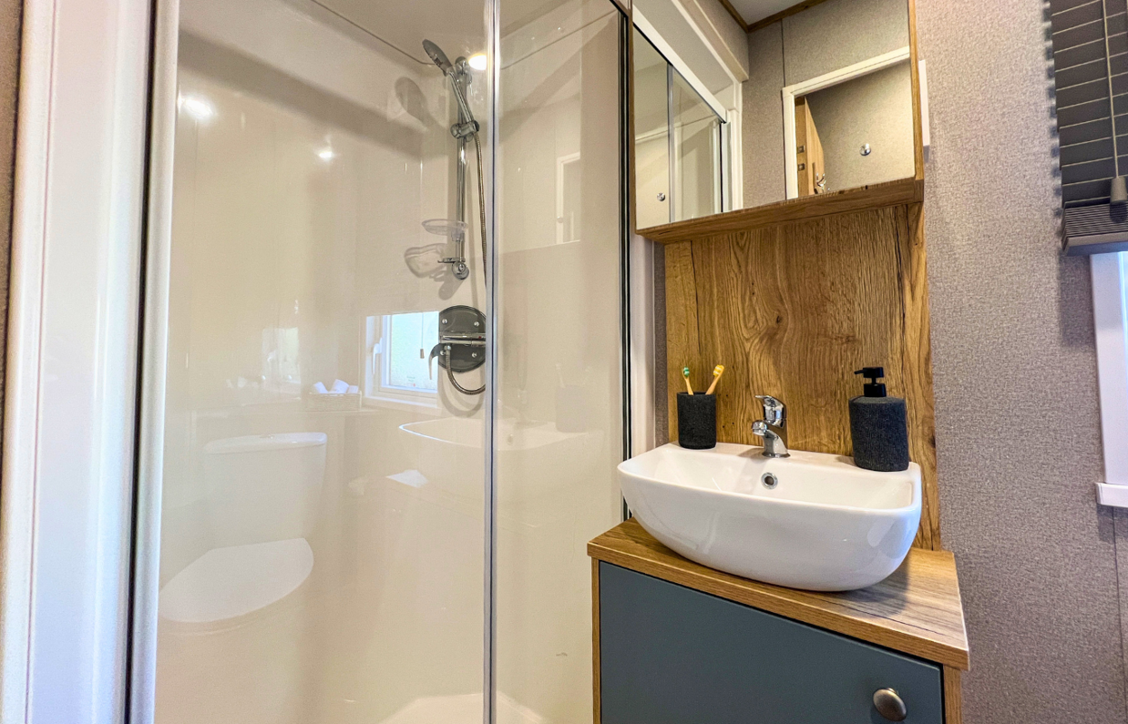 Set on a quiet, secluded pitch surrounded by greenery, this beautifully presented holiday home offers the perfect balance of privacy and comfort.