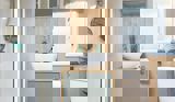 Perfect for mealtimes or evening games, the freestanding table and chairs sit neatly between the kitchen and lounge for easy, sociable dining