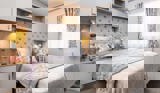 A sophisticated master with king-size bed, upholstered headboard, and en-suite, plus a stylish twin room – both with ample wardrobe space and tasteful décor
