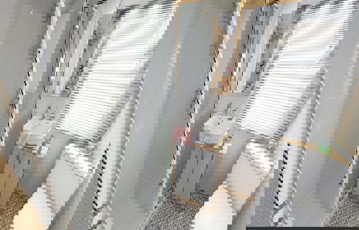 The main bathroom includes a spacious shower, stylish vanity unit, and mirrored cabinet, with an additional en-suite in the master for added convenience