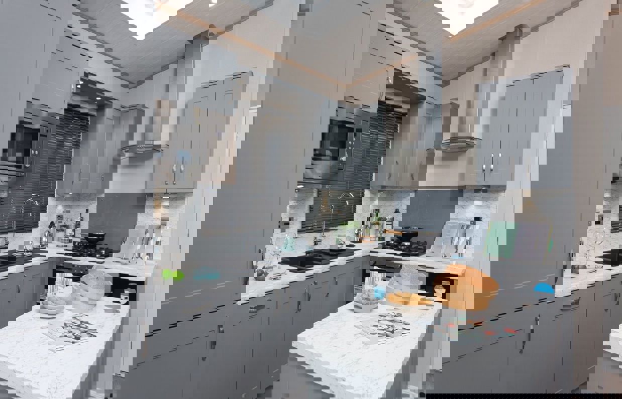 The Pemberton Langton Lodge warmly welcomes you as you walk in through the entrance vestibule into the beautifully laid out space, with light beaming in through the Velux window above the well appointed, fully integrated kitchen.