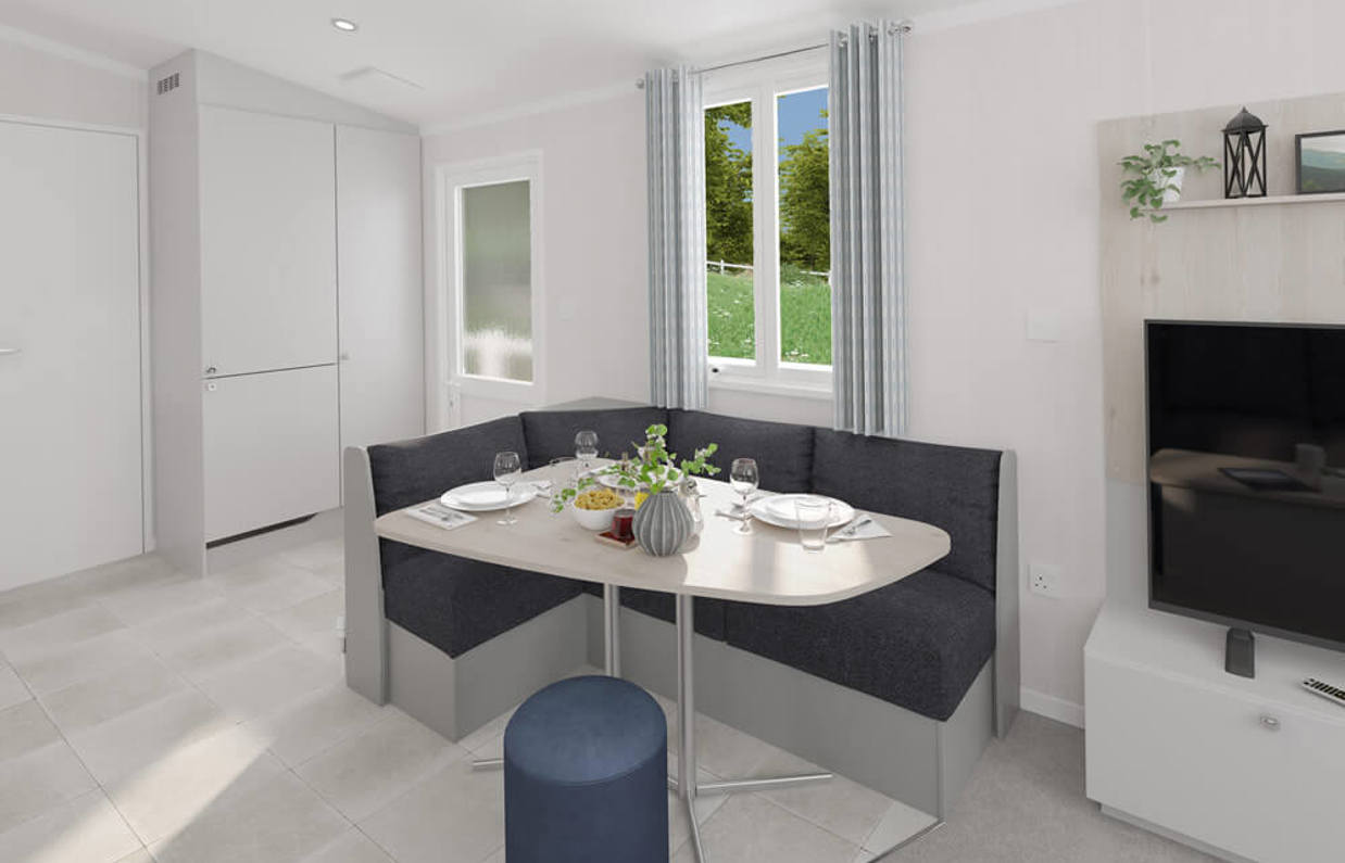 Bright, fun and functional, the Loire Holiday Home delivers stunning value with looks to match. The Loire’s large interior has a refreshing soft furnishings scheme and everything a family needs for a relaxing holiday.