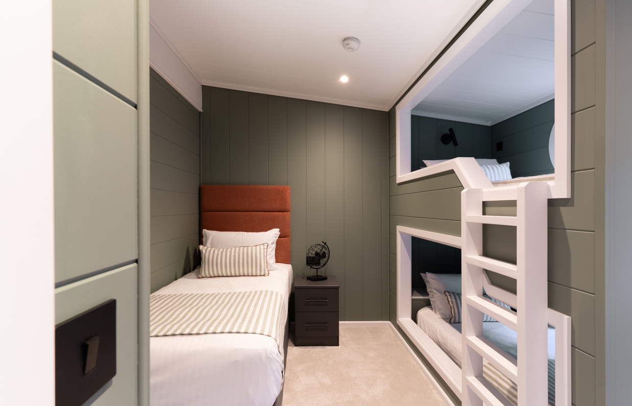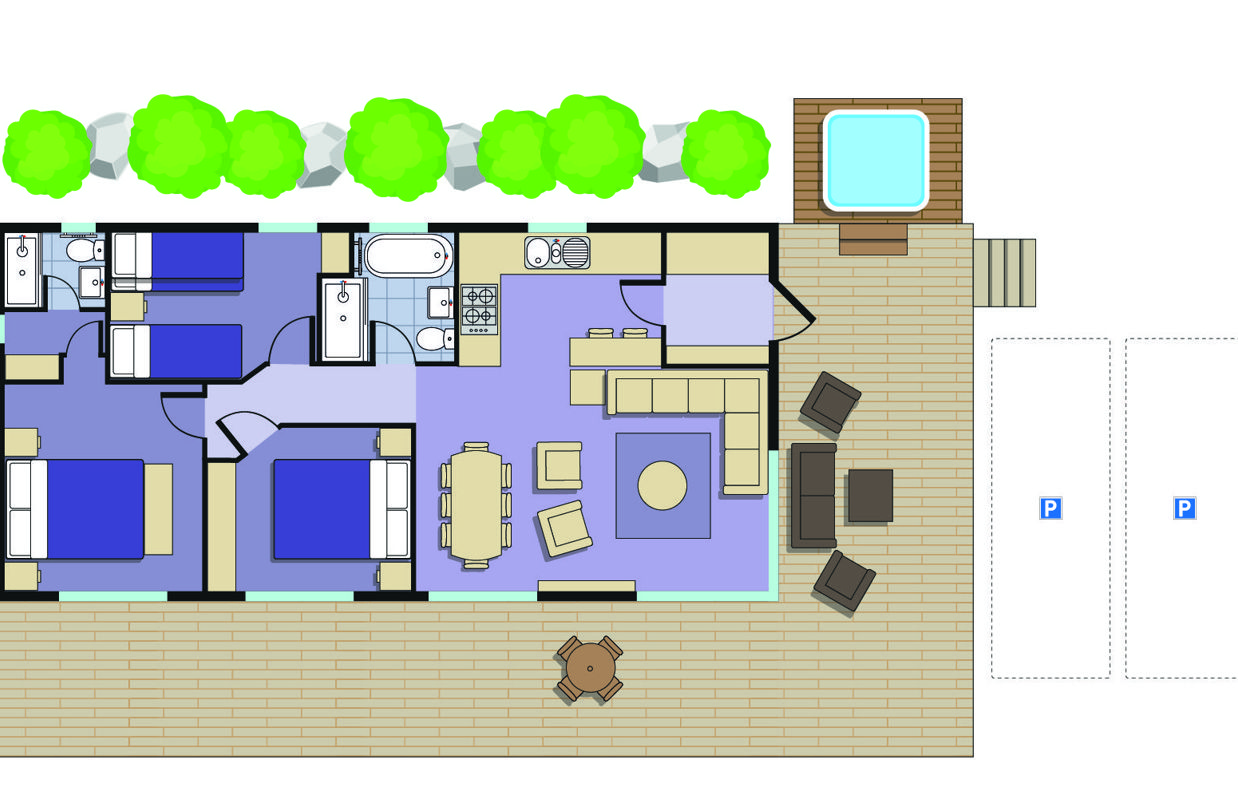 This unique lodge screams wow from its high rise ceiling to expansive decking area, and spacious living space. This fresh, light and airy lodge has room for all your friends and family sleeping 7 in its cosy bedrooms. It offers enviable, spectacular sea views to absorb from your raised hot tub - the only one of its kind among Waterside’s array of lodges. It’s the ultimate in luxury holiday home living. With wood-clad exteriors, wraparound decking, and a location enveloped by nature, this lodge feels miles away from the everyday. Think lazy breakfasts with birdsong and balmy evenings under the stars. Here, it’s all about quiet luxury and being present in the moment.