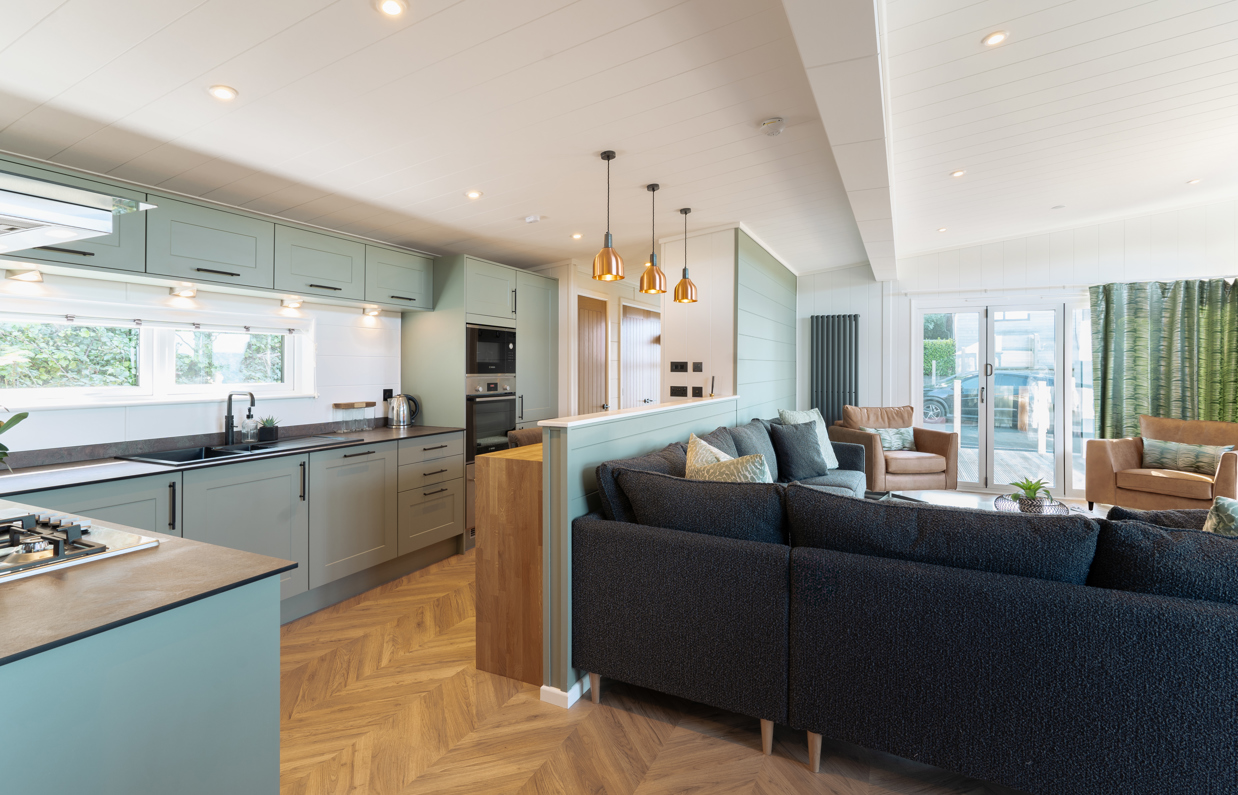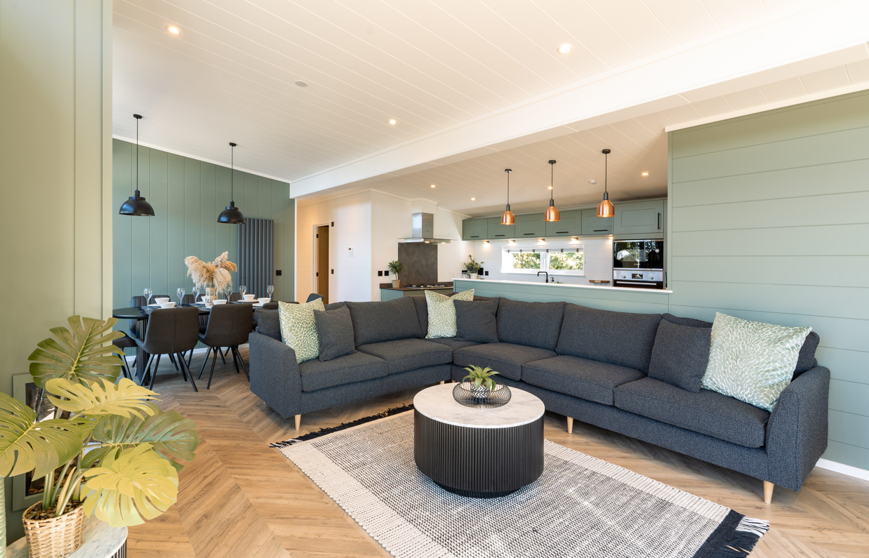 The Osmington Lodge is a bespoke lodge built in collaboration with Prestige Park & Leisure Homes specifically for a spectacular sea view pitch at Osmington Mills Lodge Park. Nestled within the tranquil embrace of the Park’s serene woodlands, The Osmington Lodge stands as a testament to the timeless allure of countryside living. Here, amidst the coastal views and rolling hills, holiday homeowners are invited to unwind in the comforting, spacious lodge, adorned with contemporary amenities and thoughtful touches.