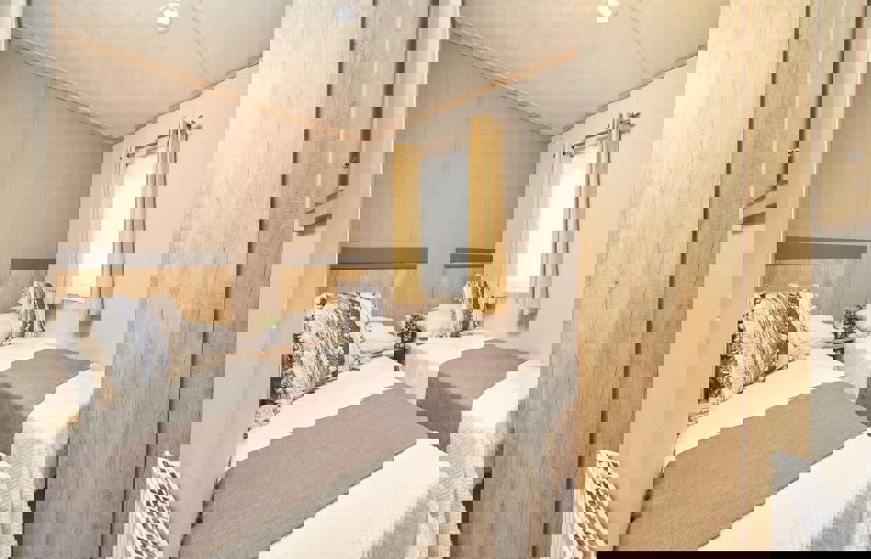 Includes a cosy twin room and a spacious master, both finished in calming neutral tones with soft furnishings that add a homely touch.