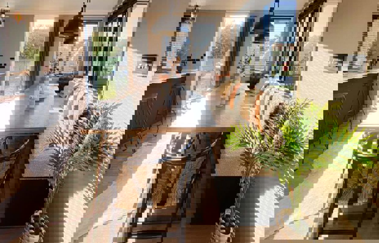 This modern holiday home is all about luxurious comfort. The open plan living area is spacious, light and airy with warm textures and tones throughout. The well designed layout creates space for everyone to enjoy; whether relaxing or entertaining.