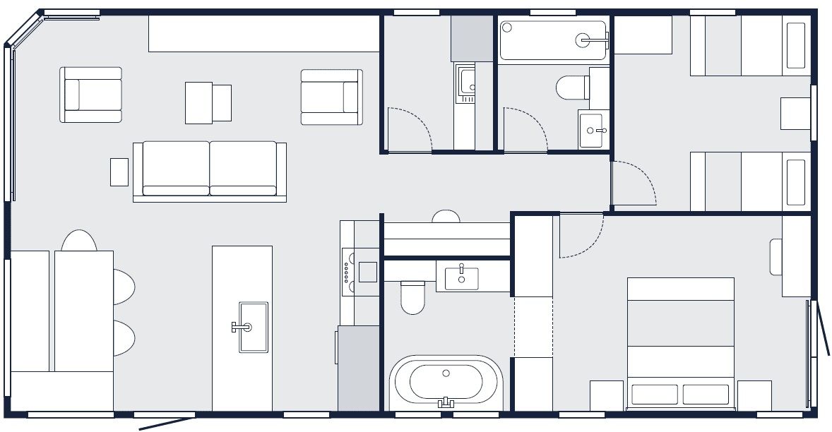 The Victory Franklin brings you extra spaces to maximise your holiday, such as study or hobby space in the hall leading to the bedrooms, and a utility room off the kitchen.