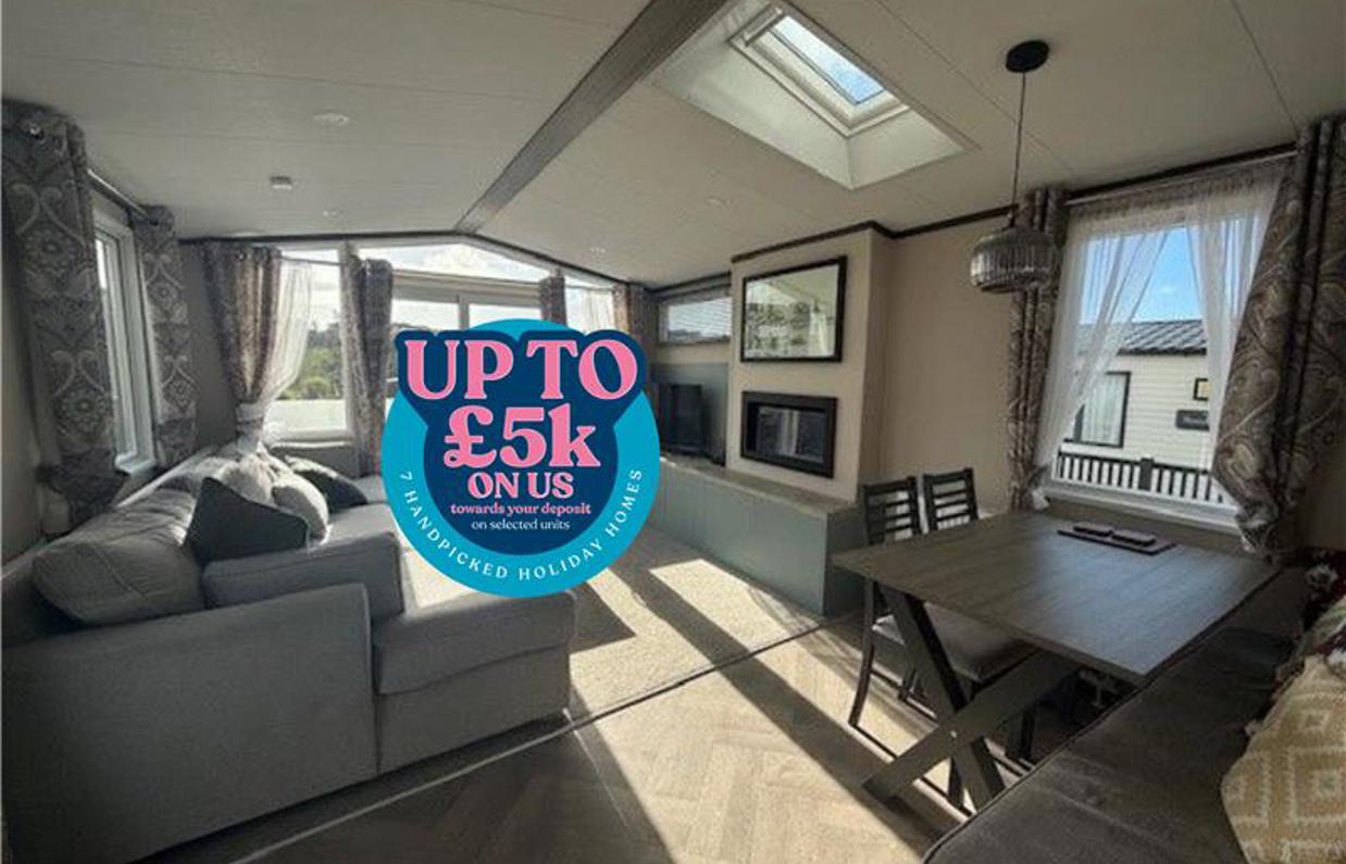 *Holiday home cash package price £59,995 less deposit of £14,995, with a loan amount of £45,000. 120 monthly payments of £581.73. Total charge for credit is £24,807.57. Total amount payable is £84,802.57 including the deposit amount. The interest rate is 9.9% APR (representative).