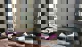 Featuring an L-shaped sofa, statement media unit, and floor-to-ceiling windows that keep the space light and airy. Ideal for movie nights, family games, or just putting your feet up