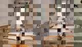 The large L-shaped sofa offers plenty of space for everyone to relax, and sits opposite a large media unit to unwind with in the evening. A fold-out bed and under-seat storage caters for extended family or friends.