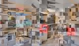 With a full oven, fridge, microwave, and ample storage, the kitchen is designed for easy holiday living and family mealtimes